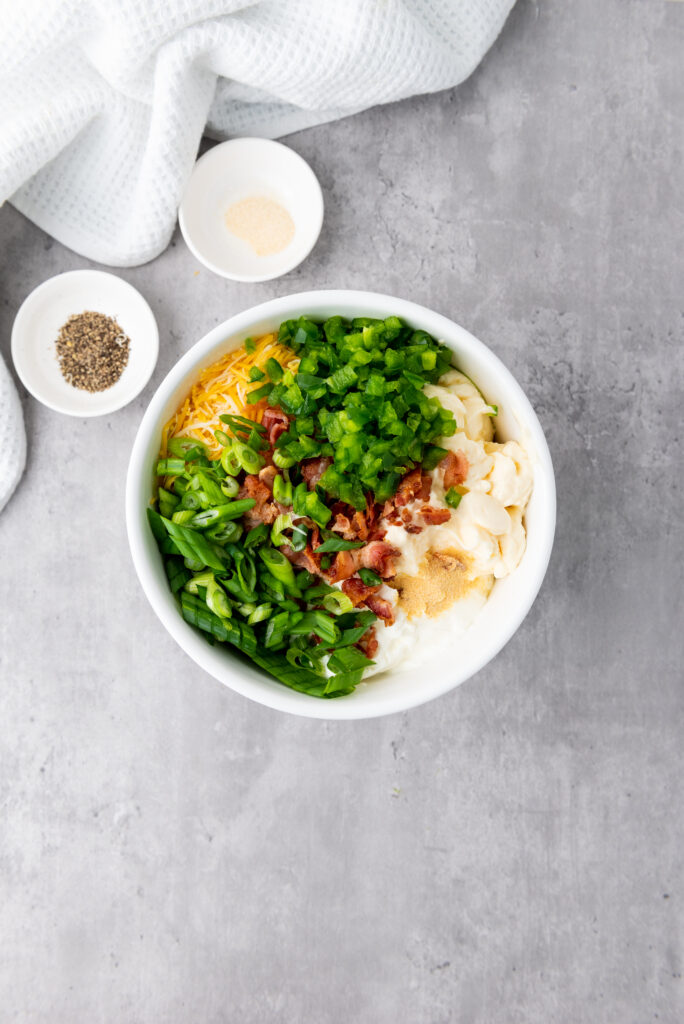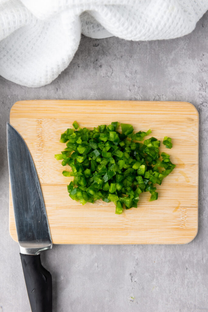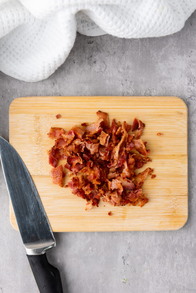 Chop the scallions, jalapeno, and cooked bacon. Set aside.