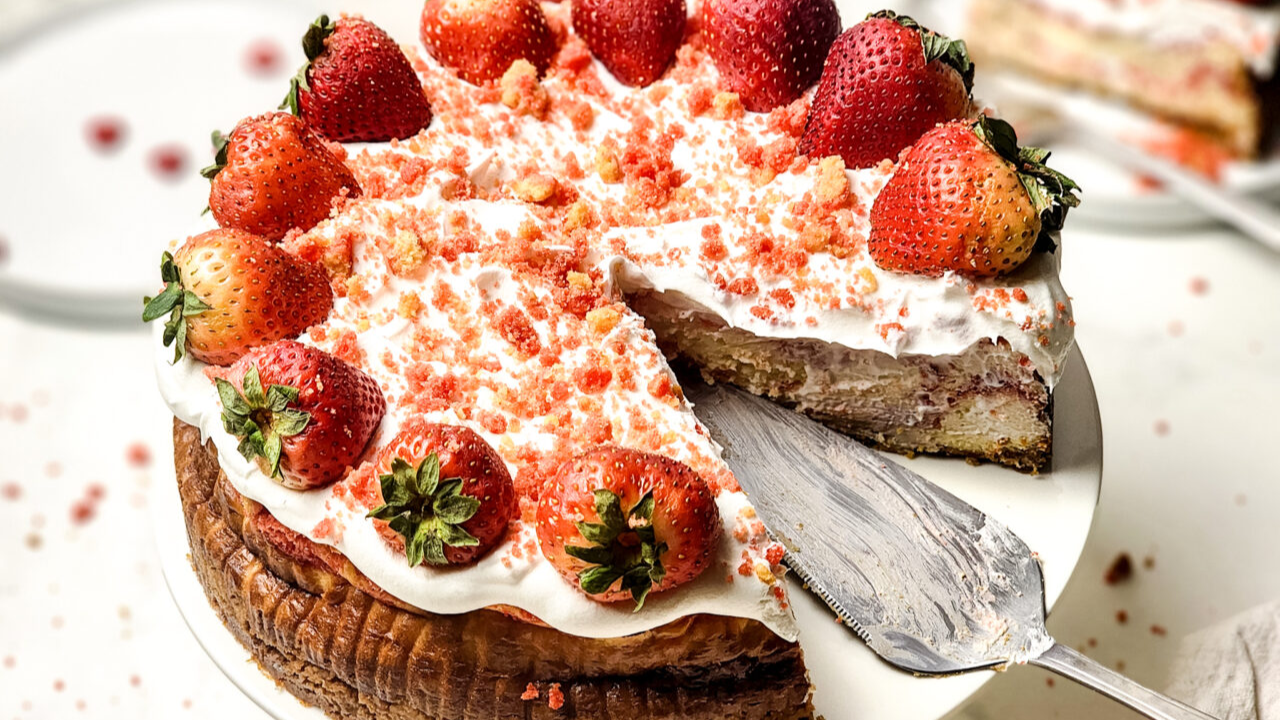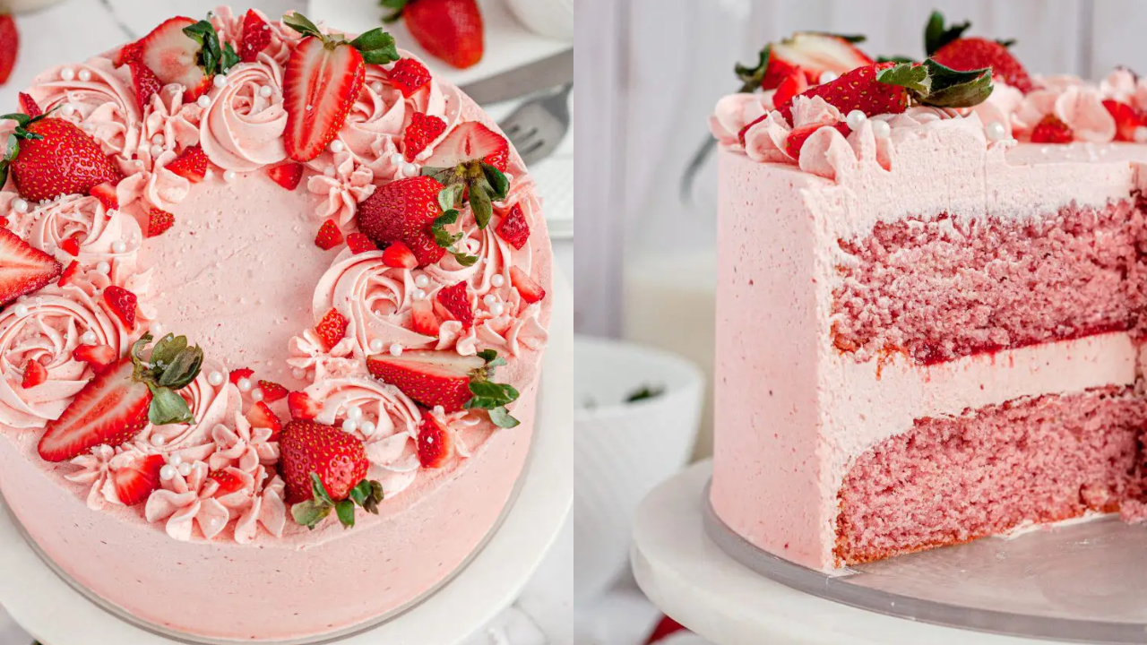 Soft layers of fluffy strawberry cake are filled with a rich strawberry reduction and finished with light whipped strawberry buttercream frosting. The sweet berry flavor paired with the slightly tart strawberry filling creates a bright, fresh dessert that tastes like summer in every bite.