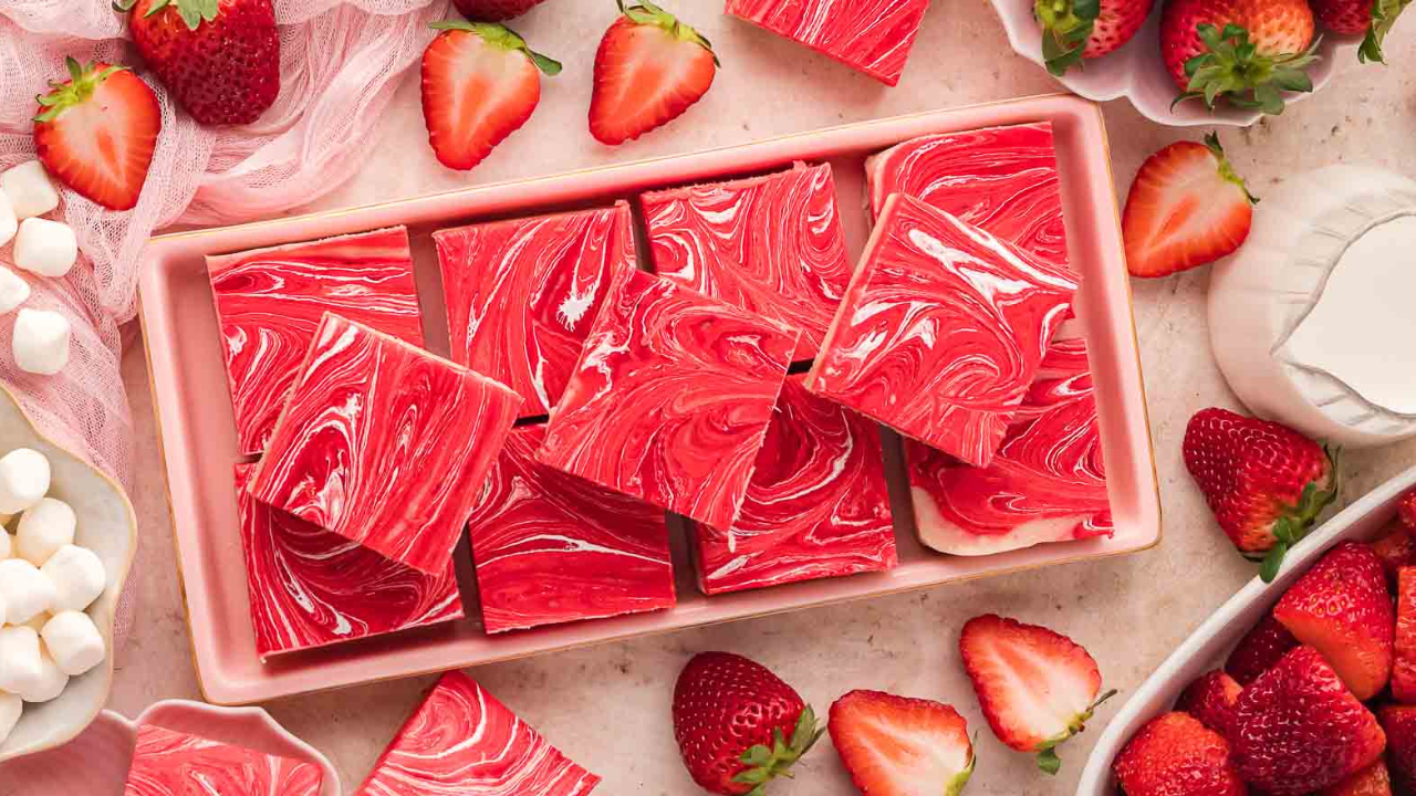 This easy no-bake fudge is sweet, creamy, and loaded with strawberry flavor. With a smooth white chocolate base and a fruity swirl of jam, it’s the kind of treat that looks pretty on a platter and disappears fast. It’s perfect for summer when you want a simple chilled dessert that still feels a little special.