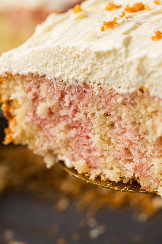 This recipe uses a boxed cake mix for convenience, making it perfect for busy days when you still want something homemade. The gelatin adds moisture and a burst of fruity sweetness, while the whipped cream topping keeps it light and balanced rather than overly rich.